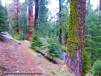 The hike cruises along 1000+ year old sequoias, lush green meadows, idyllic bridges, and a clear flowing creek. Along with the Giant Sequoias, the trail remains in a forest of pine, fir, black oaks, dogwood, and fern for most of its length.